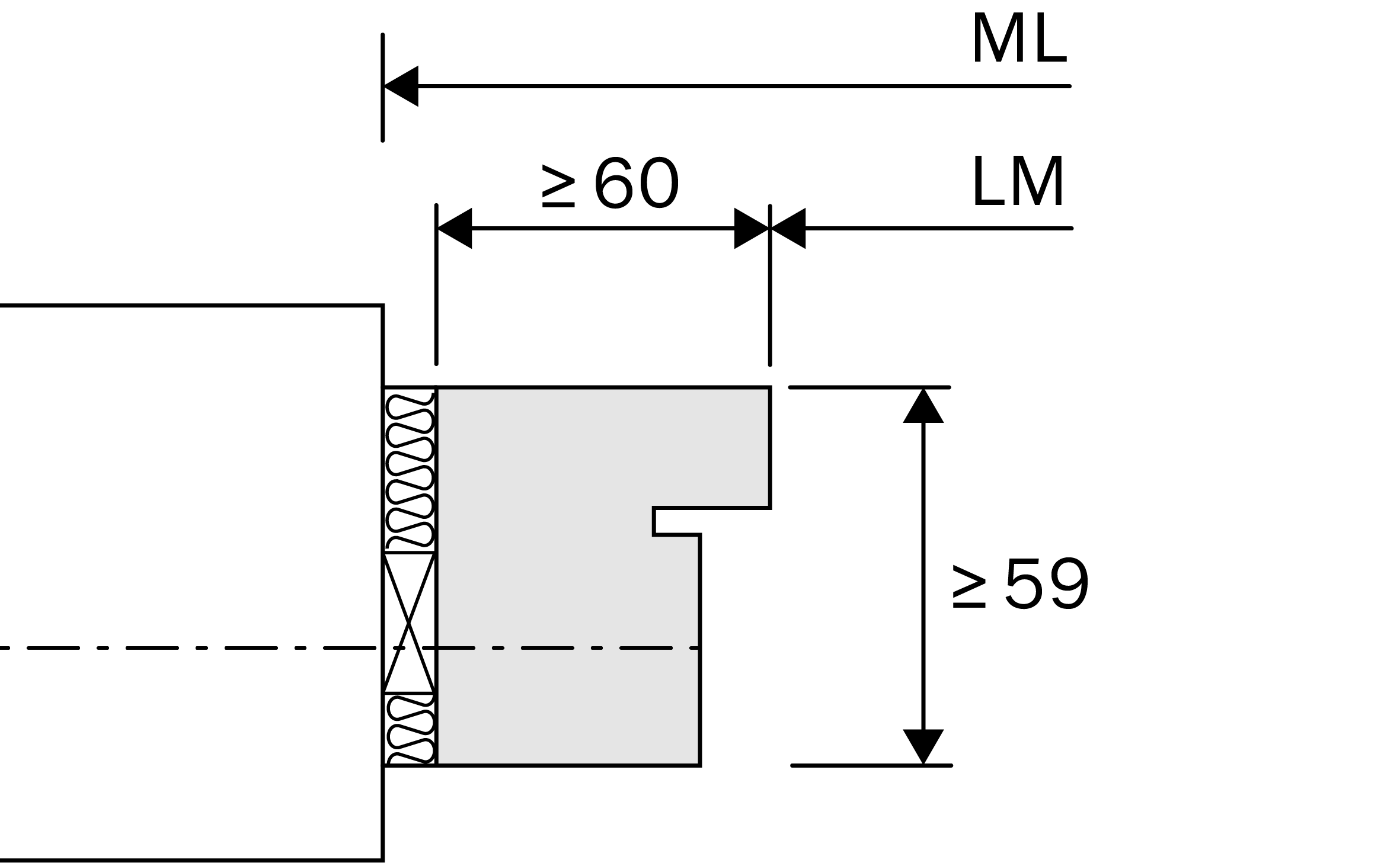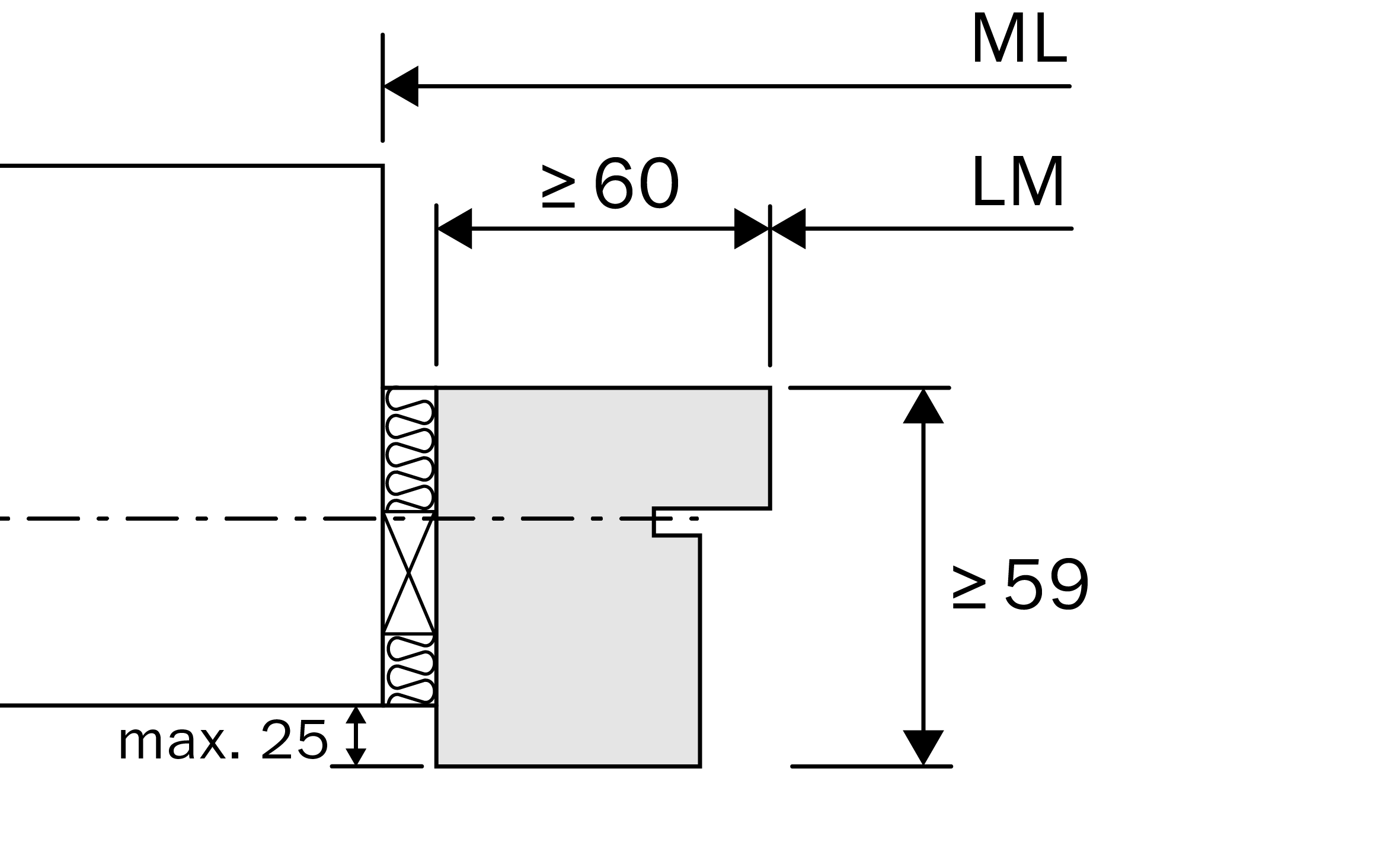 | Umfassung | Block- oder Blendrahmen, min. Breite 33 / 60 mm, Stärke 59 mm |